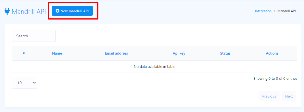 Click on New Mandrill API and a modal will appear to add sendgrid api. Fill up the form with necessary information and hit Save button.